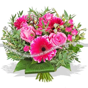 Румяный сувенир - букет из роз,альстромерии и гвоздик